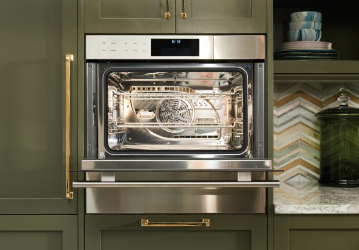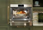 Detects the volume, shape, and consistency of your food with a climate sensor that adjusts time (you can even delay the start for when you want your dish ready), temperature, and humidity for guesswork-free delicious results, every time; Features space enough to cook multiple dishes at once (or a 15-lb turkey); Insert a temperature probe to tell you exactly when it is done—and in Gourmet Mode, it will alert you the moment the dish is ready.; Provides an extraordinary 90 minutes of steam cooking with an easy-access water tank; Small size and versatile design to fit in any kitchen; Integrates beautifully into surrounding cabinetry with flush installation; Master your technique with tips and recipes from the Master the Convection Steam Oven guide