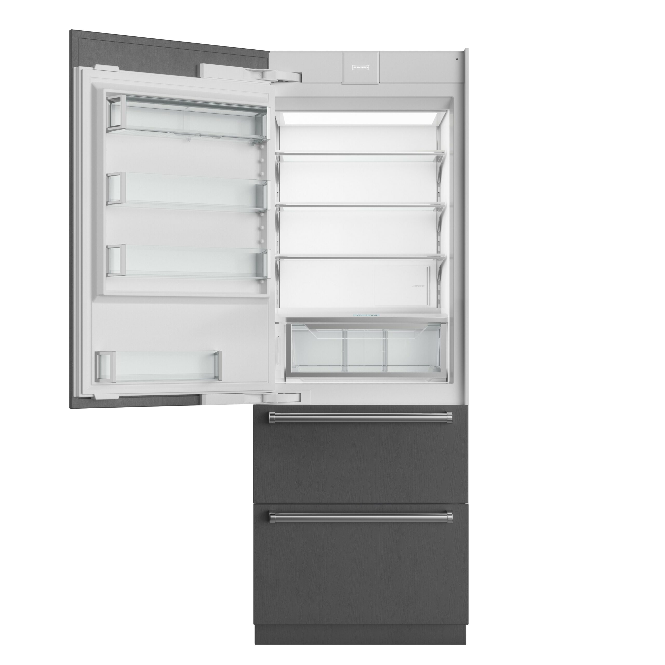 Accepts custom panels for an integrated look within cabinetry or stainless-steel accessory panels and handles to match other Sub-Zero, Wolf, and Cove products