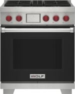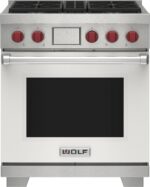Make a statement with your choice of door colors and finishes for your Wolf Dual Fuel Range—classic stainless or new powder-coated black or white; Patented dual-stacked, sealed burners offer precise temperature adjustment; Wolf’s Dual VertiFlow™ convection system provides reliably even heat, reduces hot and cold spots, and enables consistent multi-rack cooking; Gourmet Mode features nearly 50 presets that automatically control the oven to ensure delicious results; Take the guesswork out of cooking with 10 chef-created cooking modes, including Bake, Broil, Convection, Convection Roast, Dehydrate, Gourmet, Proof, Roast, Stone, and Warm; Burners produce up to 20,000 Btu for fast boils and intense sears and as low as 300 Btu for true simmers and melts; For improved temperature control and safety, the spark ignition system reignites burners automatically; The full-color touchscreen is intuitive and easy to read, discreetly hiding away when not in use; LED backlit control bezels illuminate when in use, indicating which burners are active; The oven offers self-clean, delayed start, timed cook, and Sabbath features; The temperature probe alerts you when your dish has reached the desired temperature; Control your oven from wherever you are using our convenient Owner’s App—remotely preheat, adjust temperatures, select modes, and more