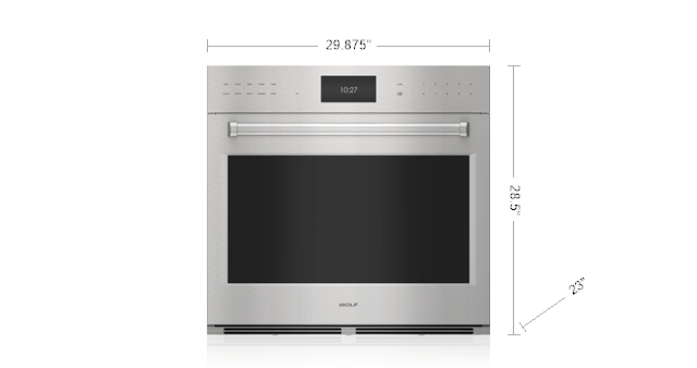 Overall Dimensions: 29 7/8″ W x 28 1/2″ H x 23″ D; Oven 1 Interior Dimensions:25 1/4″ W x 17 1/2″ H x 18 1/2″ D; Usable Capacity: 3.1 cubic feet; Overall Capacity: 4.7 cubic feet; Door Clearance: 21 3/8″; Conduit Length: 4 Feet; Star-K Certified