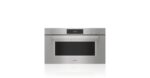 The elegant, modern aesthetics pair perfectly with a full suite of similarly styled Sub-Zero, Wolf, and Cove appliances; Full-color touchscreen simplifies use and adds refinement to the design. Easily customize the user interface with drag-and-drop tile options; The door opens and closes quietly for an elevated experience; Save up to 50 personalized recipe presets for quick access to your favorite go-to meals; Cooking modes include Steam, Convection, Broil, Slow Roast, Bread & Pastry, Proof, Sous Vide, Reheat, Warm, Gourmet, and Gourmet+. Additional modes include Wellness, Cleanse, and Steam Clean; Oven features a 1750-watt recessed broil element with multiple settings; 2.4 cubic-foot oven cavity allows multiple dishes to be placed side by side at once; 1889-watt dual convection system ensures even, multi-rack baking and consistent results; Three full-extension rack positions and one standard position allow easy access and increased cooking flexibility; Plumbed water supply provides continuous steam cooking; The temperature probe alerts you when your dish has reached the desired temperature