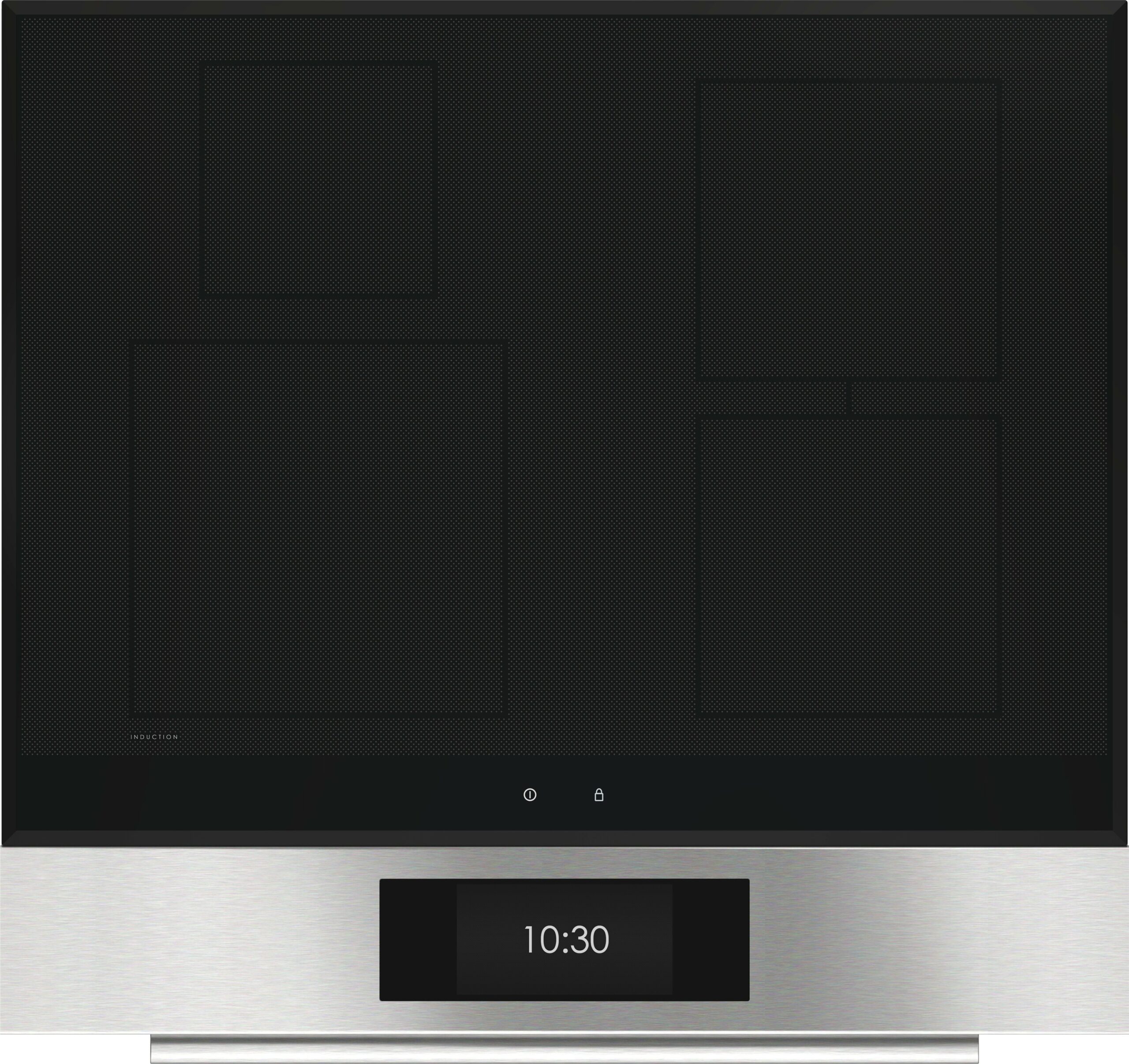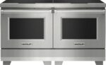 The scratch-resistant, ceramic glass induction cooking surface offers consistent, precise temperature control and nearly instantaneous temperature adjustment response; Wolf’s Dual VertiFlow™ convection system provides reliably even heat, reduces hot and cold spots, and enables consistent multi-rack cooking; Gourmet Mode features nearly 50 presets that automatically control the oven to ensure delicious results; Take the guesswork out of cooking with 10 chef-created cooking modes, including Bake, Broil, Convection, Convection Roast, Dehydrate, Gourmet, Proof, Roast, Stone, and Warm; The sleek rangetop features a striking interactive display. The full-color touchscreen is intuitive, easy to read, and locks for safety and cleaning; Boost Mode delivers rapid heat for lightning-fast boil times; The Bridge function joins two induction zones into one large area, enabling use of an induction-capable griddle, open roaster, or fish poacher; Because the cooktop stays relatively cool, spills don’t stick to the surface—making cleanup a breeze; The oven offers self-clean, delayed start, timed cook, and Sabbath features; The temperature probe alerts you when your dish has reached the desired temperature; Control your oven from wherever you are using our convenient Owner’s App—remotely preheat, adjust temperatures, select modes, and more; The range’s stainless-steel construction and heavy-duty handles coordinate with a full suite of PRO-style Sub-Zero, Wolf, and Cove appliances; Achieve the bold look of a 60” induction range with two 30” units installed side by side and joined by a stainless-steel trim kit