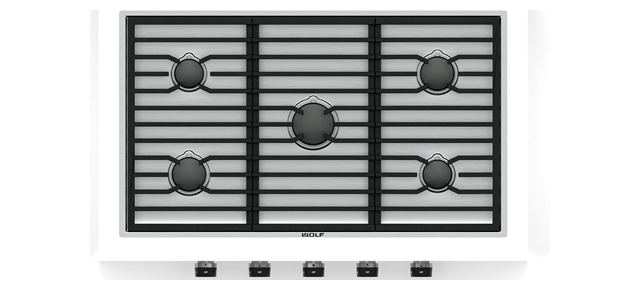 Maintain control with dual-stacked burners that go from 20,000 Btu down to a mere breath of flame; Simmer and melt sauces, soups, and marinades easily with the lower tier of the dual-stacked burner; Slip this stunning minimalist design flush with your countertop with illuminated, front-facing control knobs; Reignites flame automatically with spark ignition system; Cleanup is a snap as sealed, seamless burner pans contain sloshes and spills; Move pots and pans effortlessly across the continuous cast-iron grates; Comes standard with black control knobs