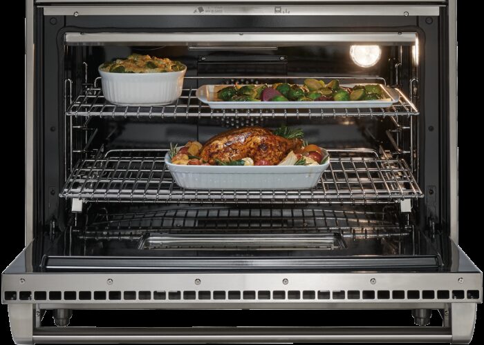 Overall Dimensions: 35 7/8″ W x 37″ H x 28 3/8″ D; Oven 1 Interior Dimensions:30″ W x 18 5/8″ H x 17″ D; Oven 1 Usable Capacity: 3.7 cubic feet; Oven 1 Overall Capacity: 5.5 cubic feet; Door Clearance: 19 1/2″; Star-K Certified; Shipping Weight: 480 lbs; Receptacle: 3-prong grounding-type