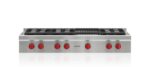 Maintain control with six dual-stacked burners that go from 20,000 Btu down to a mere breath of flame; Simmer and melt sauces, soups, and marinades easily with the lower tier of the dual-stacked burner; Match other Sub-Zero, Wolf, and Cove products with heavy-gauge stainless steel and signature red infinite control knobs; Sear with a 16,000 Btu infrared charbroiler; Cleanup is a snap as sealed, seamless burner pans contain sloshes and spills; Move pots and pans effortlessly across the continuous cast-iron grates; Reignites flame automatically with spark ignition system